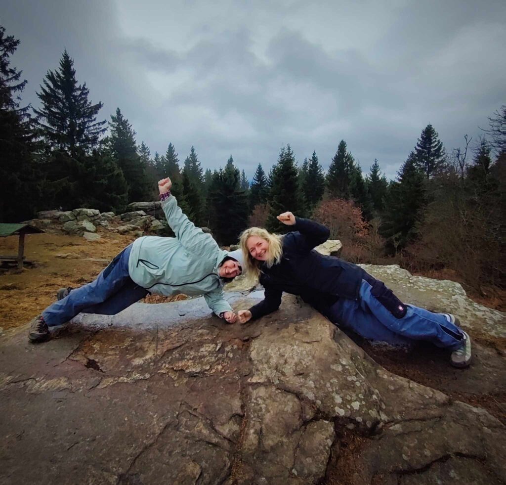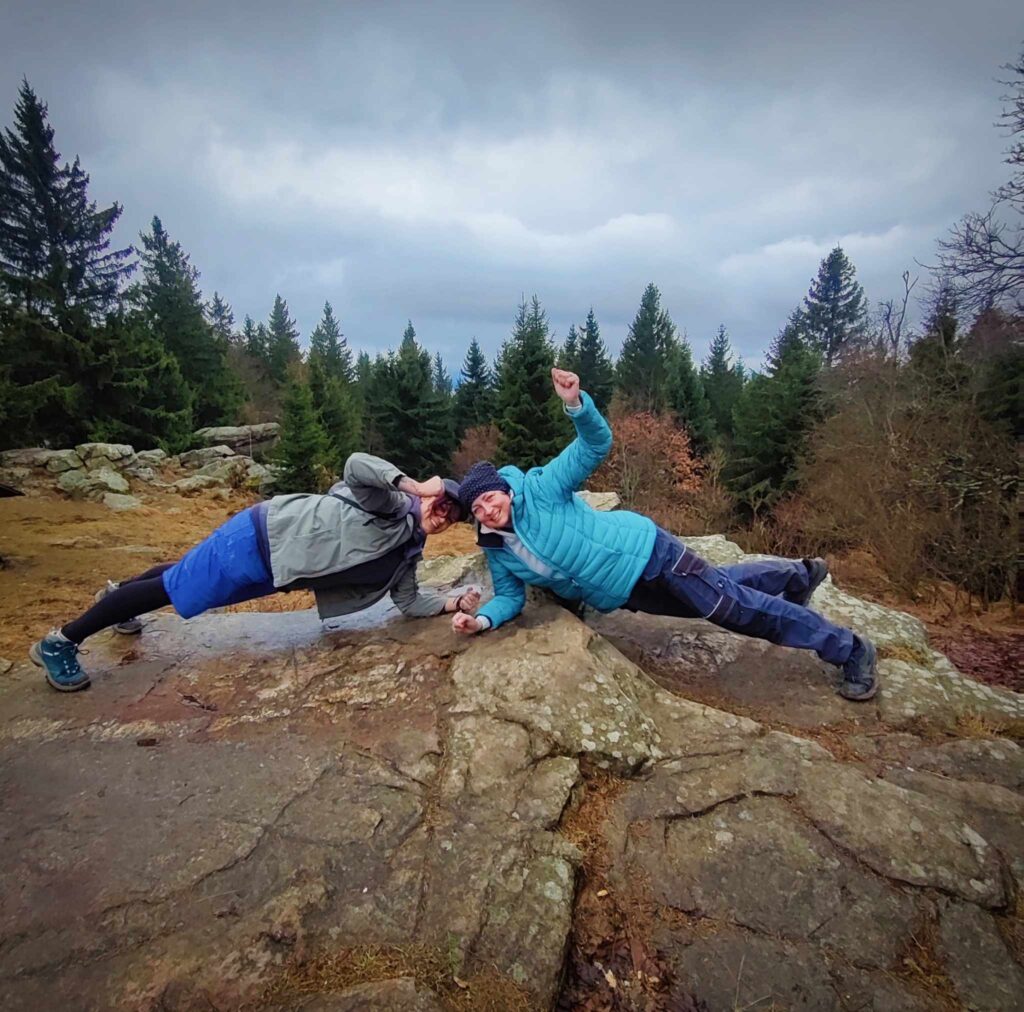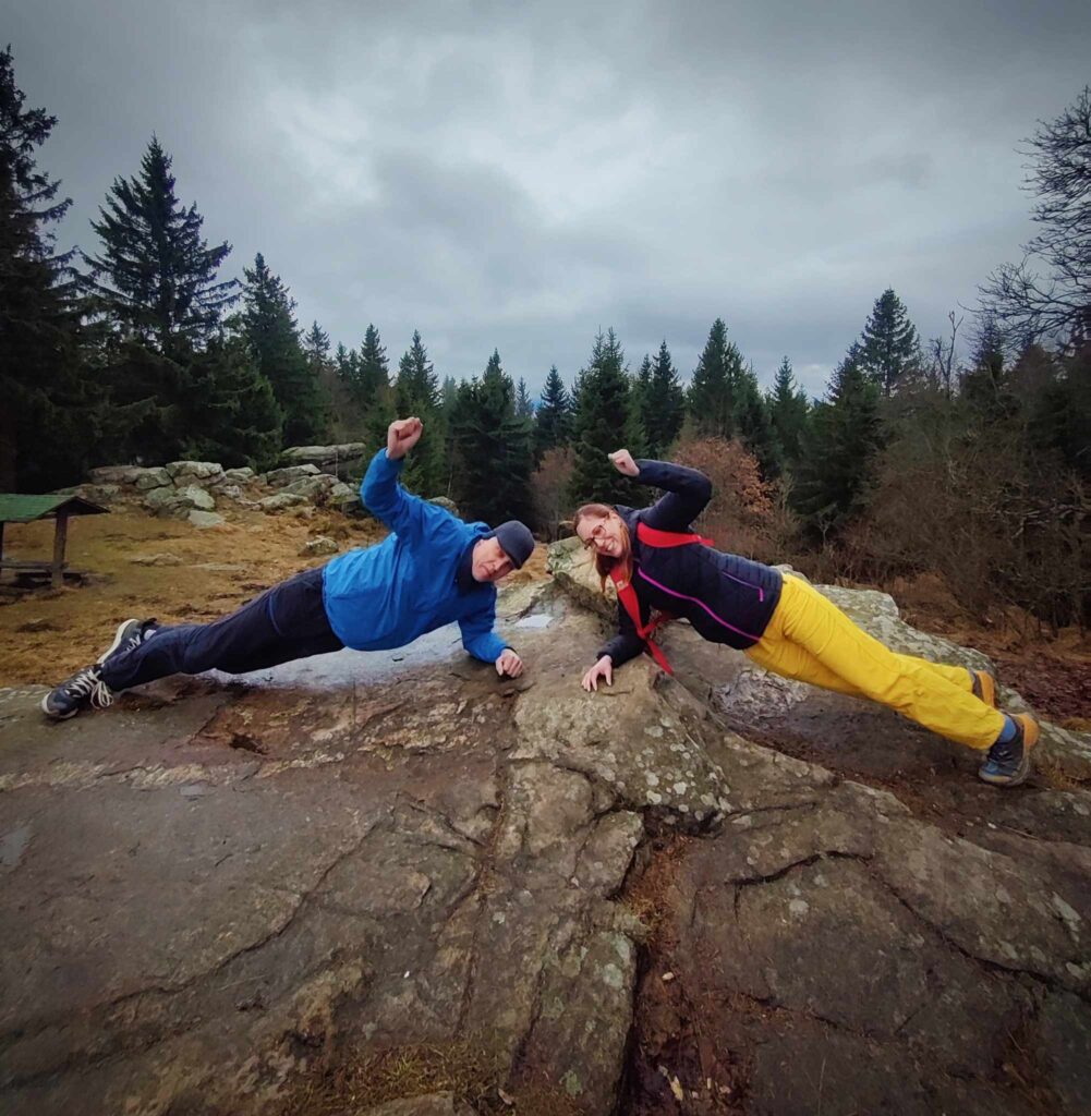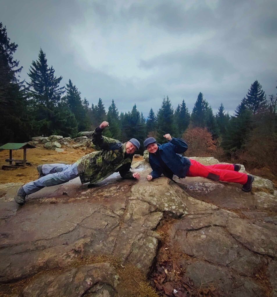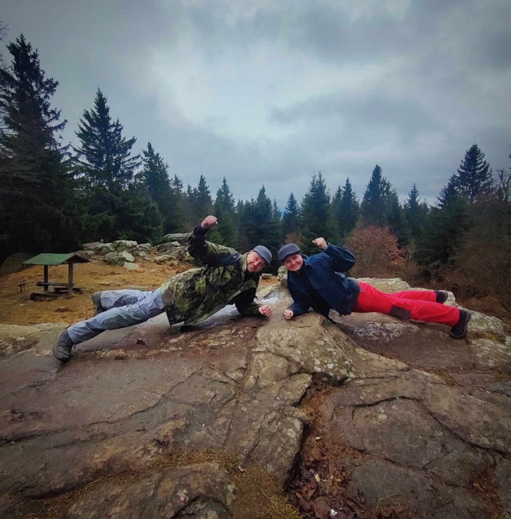 A jelikož na včerejší afterparty po kině byl náš pozdrav povýšen do levelu č.2 a k ránu vyzkoušen s náhodnými kolemjdoucími, dnes jsme se na vrcholu drželi madla v planku všichni. Uvidíme dále, kam až náš pozdrav může dojít.