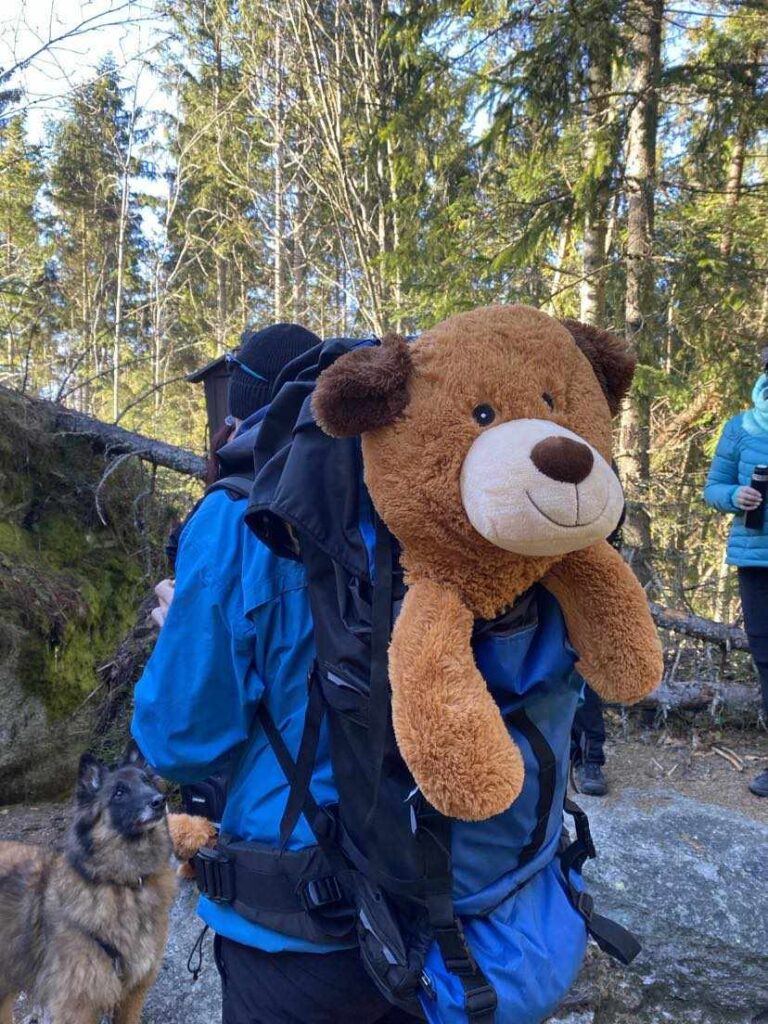 Dalším výletem a zároveň prvním v rámci zdolávání výzvy 32 vrcholů Šumavy byl přechod Medvědí stezky. A když Medvědí stezka tak co? No samozřejmě, medvědi. Nutno říct, že všichni to pojali naprosto zodpovědně a každý měl svého medvěda nebo medvídka. A ti co měli místo medvěda například opici nebo psa? U Chocholoušků to není žádný problém.