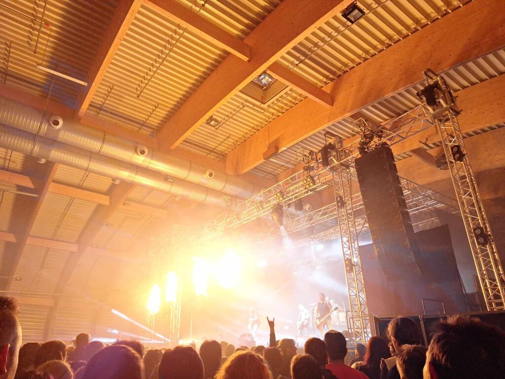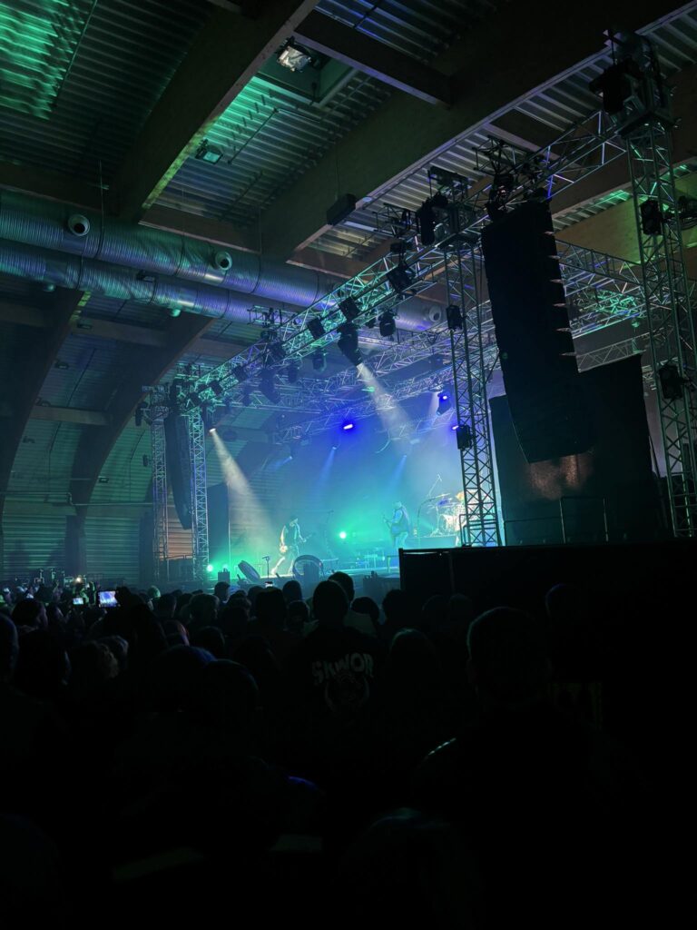 No, blíží se devátá, přesouváme se do haly a začínají znít první tóny. Jenže, na takovouhle kapelu nemůžeš stát někde vzadu v hale, ale je bezpodmínečně nutné být co nejblíž pódia a vychutnat si tu ukřičenou, upocenou a smradlavou atmošku. Prodíráme se téměř do prvních řad a začínáme se vlnit a pět do rytmu (a myslím, že nám to jde … 😀 ) Podle mě, si to myslí i další jedinci okolo nás, protože nám uvolňují místo (asi abychom byli kapele blíž….. 😛 ).